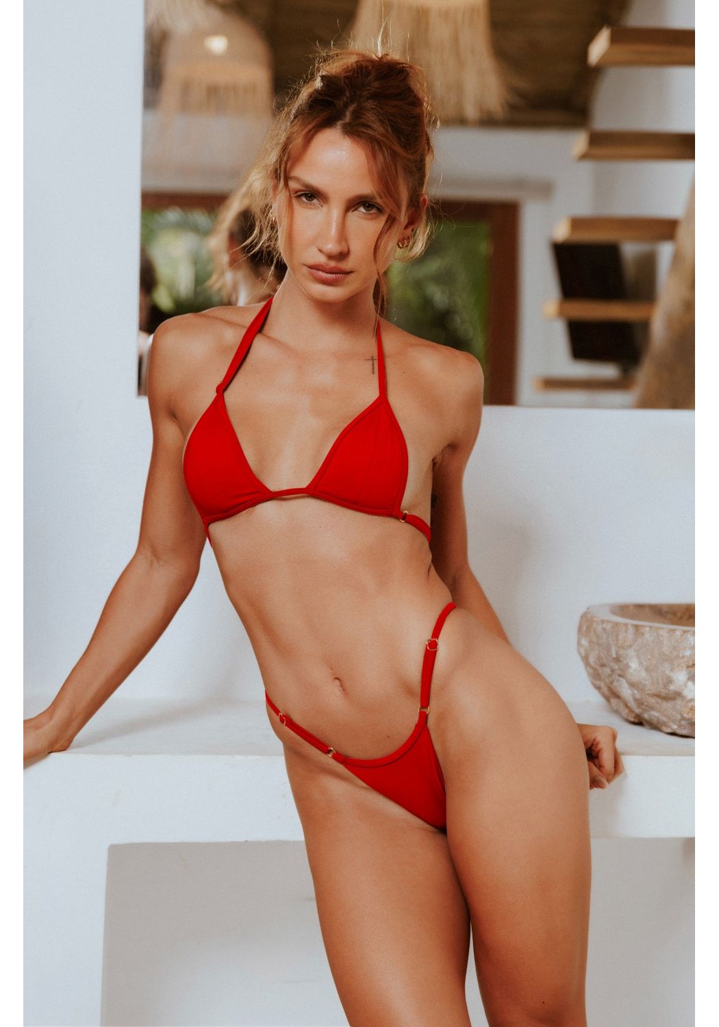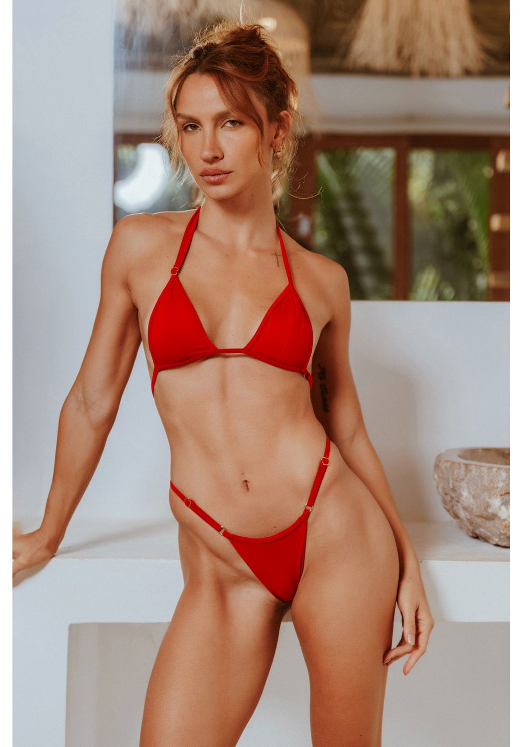 Biquíni Fita Vermelho: Top que ajuda a regular da melhor forma no seu corpo, Calcinha super confortável no modelo asa delta tradicional, com as laterais bem finas para não marcar tanto e possui regulagem para ajustar melhor ao corpo.